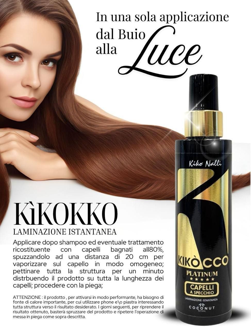 Il Kikócco è un prodotto professionale per capelli che offre una laminazione istantanea, conferendo un effetto "a specchio" immediato. Ideato per l'uso domestico.